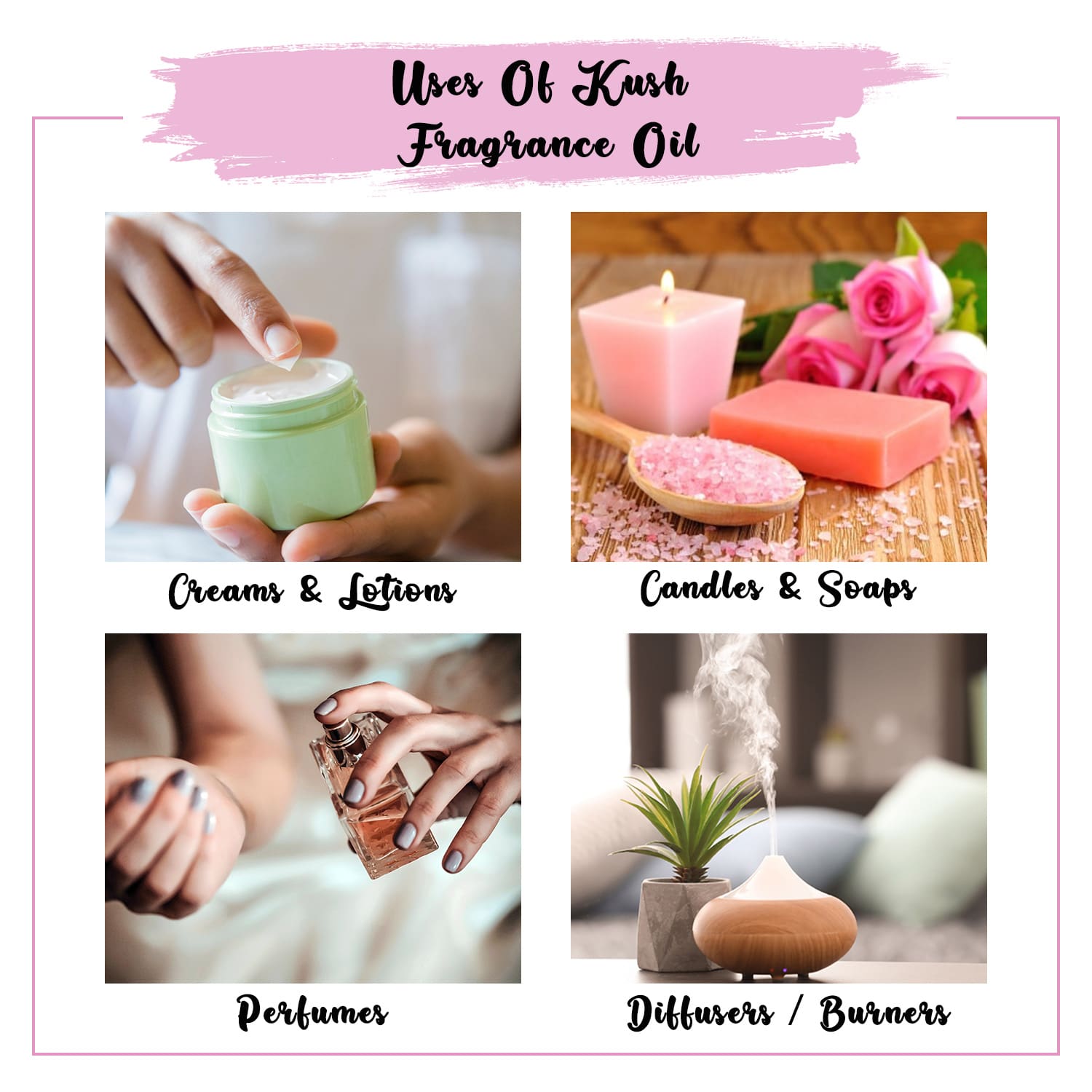 Kush fragrance oil is a calming concoction of woods, spices, and musk that appeals to the senses and infuses any setting with romance and mystery. It is hardly surprising that Kush fragrance oil has established itself as a classic. It is a crisp and delightful scent that is produced by blending citrusy lemongrass, spicy patchouli, and aromatic pine oil. The use of this aroma in candles and personal care products is common. This fragrance can be used to create a variety of goods, such as wax melts, soap, lotion, incense, etc.