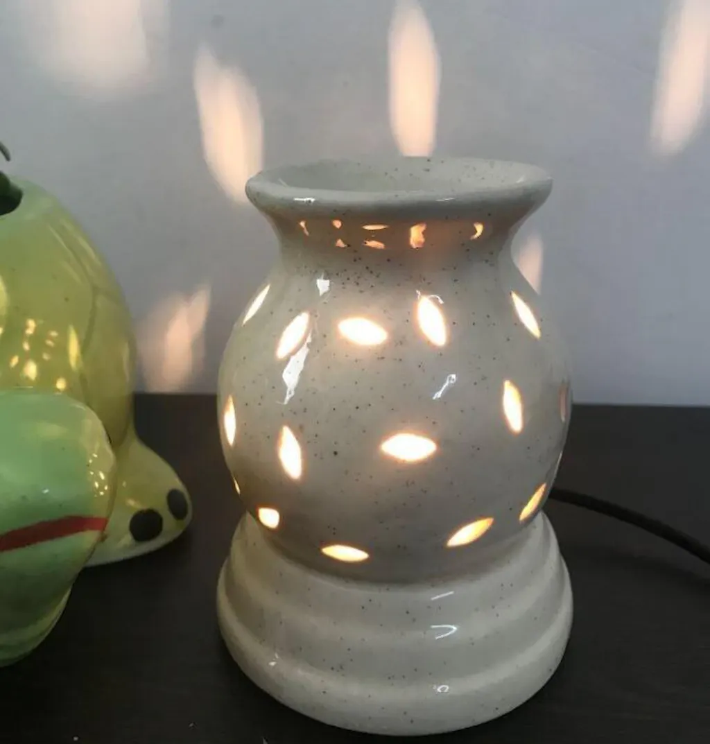 A handcrafted ceramic electric matki-shaped aroma diffuser is a decorative and functional device used to disperse essential oils or fragrance oils into the air, providing a pleasant aroma to a room or space. These diffusers are typically made from high-quality ceramic material that is shaped into a matki form. The handcrafted aspect adds uniqueness and aesthetic appeal to the diffuser, making it a decorative item as well as a functional one. Overall, a handcrafted ceramic electric matki shaped aroma diffuser combines aesthetic appeal with practical functionality, making it a popular choice for both home and professional use in aromatherapy practices.