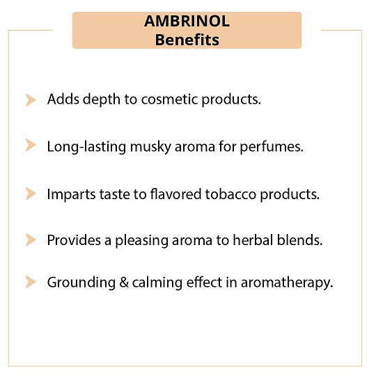 Ambrinol-95 is a popular scent that contains the natural aroma of Ambergris tincture. It has a musky and animalic undertone with notes of tobacco. Therefore, its overall aroma is quite strong and heady. The long lasting aroma of Ambrinol-95 makes it a perfect scent for shampoos, soaps, perfumes, candles, and detergents.