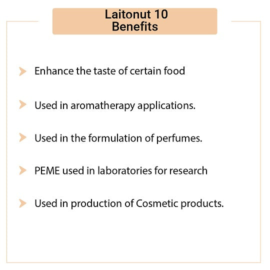 VedaOils is one of leading Wholesale suppliers, manufacturer, and exporter of Laitonut 10 in United Kingdom. Vedaoils manufactures highest quality Laitonut 10 cosmetic that does not compromise with your health and beauty. Our Cosmetic Ingredients does not contain any harmful preservatives, fragrances, additives and filler. Order Organic raw ingredients at a low price for Industrial & Personal end products.