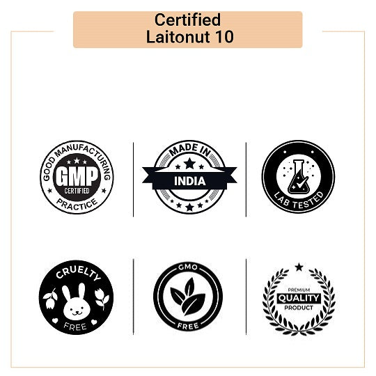 We export our Laitonut 10 to the US, Canada, Australia, and worldwide. Our products follow the highest standards when it comes to quality and purity. Your orders are delivered to your doorstep, so you don't have to worry about going outside. We assure you that you will not regret choosing us! We also deliver the products worldwide using our logistic partners DHL, FedEx, Blue Dart, India Post, etc. Get great cashback, combo offers, deals and discount offers while buying Laitonut 10 online from VedaOils store.