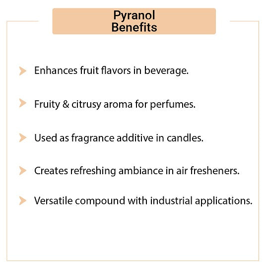 VedaOils is one of the leading Wholesale suppliers, manufacturer, and exporters of Pyranol in United Kingdom. Our Aromatic Raw Ingredients do not contain any harmful preservatives, additives, or filler. Order Pyranol raw ingredients at a low price for Industrial & Personal end products.
