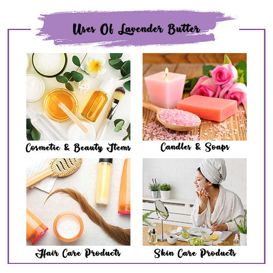 Packed with minerals, vitamins, and antioxidants, all of which contribute in making high-quality soaps and bath bars. Lavender butter hydrates skin and its rich creamy texture floral essence impart heavenly smell to soaps.