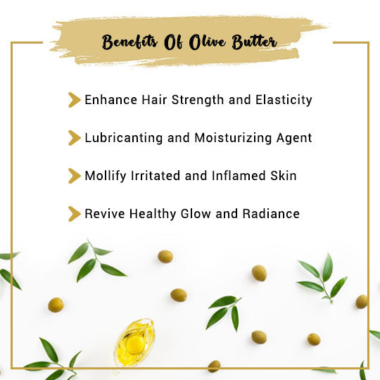 Olives contain high antioxidants, Vitamin A and E in abundance that helps to repair and renew skin that has been damaged due to pollution, harsh weather or dry winds. Regular use of Organic Olive Body Butter makes the skin firmer, smoother and healthier than it was before. Rich in moisturizing and antioxidant properties, olive body butter deeply nourishes the skin and keeps it hydrated for long.