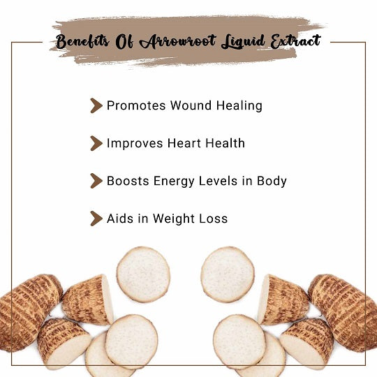 Organic Arrowroot Liquid Extract is rich in proteins and a good source of carbohydrates, Vitamin B9, and a host of minerals like calcium, potassium, potassium, magnesium, sodium, and phosphorous. With negligible amounts of saturated and unsaturated fatty acids, it is super healthy for the heart and other vital organs.