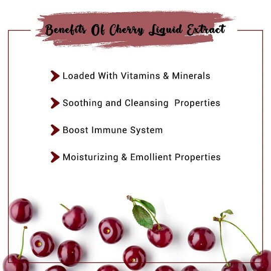 Liquid cherry extract has many therapeutic benefits on our health and it promotes sound sleep, prevents cancer, and fights against inflammation thus avoiding gout besides helping in weight loss. It also has anti-aging properties. With fewer calories and more phytochemicals (naturally occurring chemical compounds) and Vitamin C, they are nature's biggest blessing to human health.