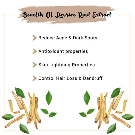 It is also used in the treatment of various skin issues and conditions. Licorice extract comprises almost 300 natural compounds that give it antibacterial, anti-inflammatory, and anti-viral properties. As it contains powerful antioxidants, it also exhibits anti-aging properties.