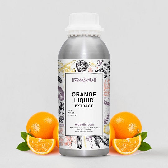 Orange Liquid Extracts are rich in fiber, Vitamin B, folate, and potassium as well as flavonoids, anthocyanins, and polyphenolic compounds all of which act as antioxidants in the body. Loaded with natural oils and nutrients they are highly beneficial for the skin and hair. While the antioxidants in oranges fight free radicals and slow down premature aging, the natural oils present in oranges moisturize the skin making it look healthier and glowing. Orange Extract Liquid prevents sagging of the skin and improves the firmness and elasticity of the skin, making it look younger.