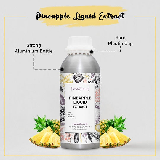 VedaOils Pineapple Liquid Extract is obtained from the pulp of fresh pineapples through scientific extraction and is high in nutrients and low in calories. Pure Liquid Extract is rich in Vitamin C, Vitamin A, Vitamin K, phosphorus, zinc, and calcium. As pineapples are loaded with natural antioxidants like flavonoids and phenolic acids they help the body to reduce oxidative stress naturally. Too much oxidative stress stimulates free radicals that damage body cells causing inflammation and a lot of many diseases by weakening the immune system.