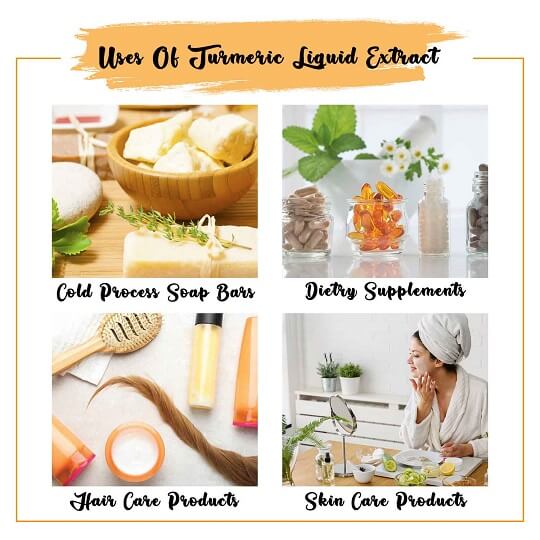 Organic turmeric liquid act as a natural antiseptic, it is highly useful in treating skin disorders, wounds, and injuries. As an anti-fungal, anti-viral, and anti-bacterial solution, liquid turmeric extract improves body immunity and removes toxins from the body. Turmeric extract is essentially active in protecting your brain against degenerative diseases like Alzheimer's. Liquid extract of curcumin also acts as an anti-depressant and helps in treating depressive disorders and mood swings.