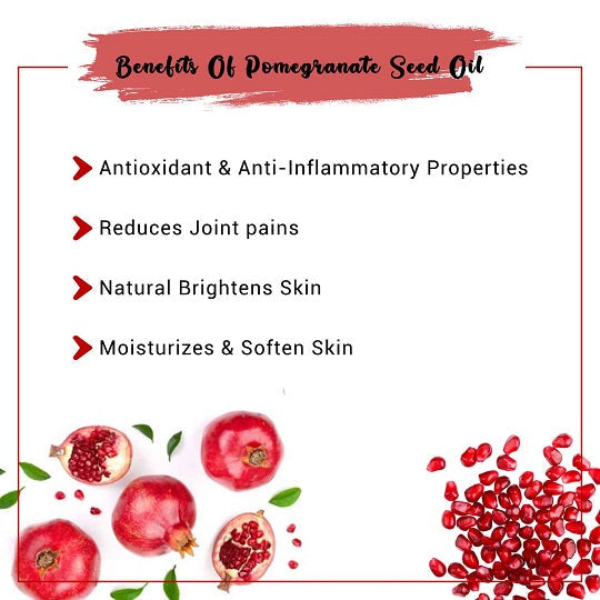 Our organic Pomegranate Seed Oil does not contain any chemicals and is safe for all skin types. This natural Pomegranate Seed Oil contains vitamin C, omega-5 fatty acids, and several bio flavonoids that prove to be beneficial for your skin in various ways. For more benefits you can add our Cold Pressed pomegranate seed oil to Scented Candles for Aromatherapy, Massage Oils, and homemade Soap Making for rejuvenating bath. Overall, it is a great oil to have at home.