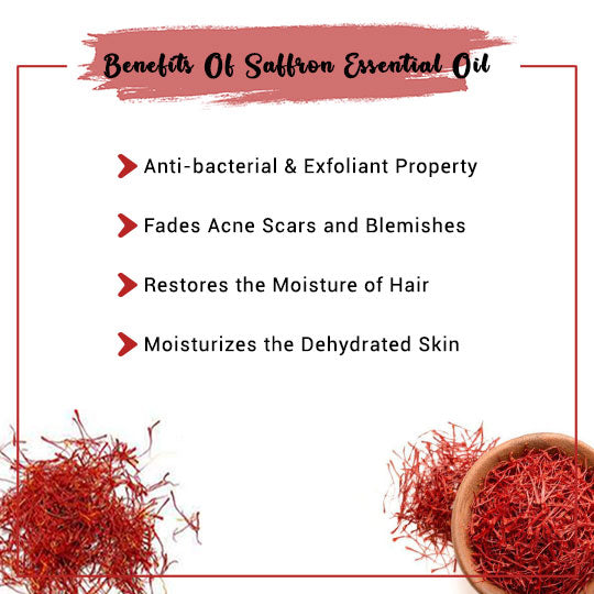 Natural Kesar Essential Oil acts as a gentle exfoliant that removes excess oil and dirt from your skin pores. Saffron essential oil is mainly used in beauty care and face care remedies due to its Soothing and Nourishing properties. It also makes your skin lighter and brighter in complexion and restores its natural glow and softness.