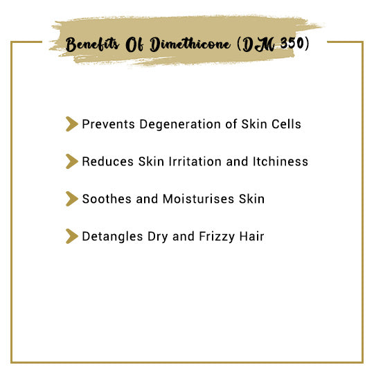 A: Dimethicone does not cause irritation or inflammation as it is made from non-irritant and non-volatile ingredients that are completely safe for the skin. DM 350 also reduces the redness and swelling.