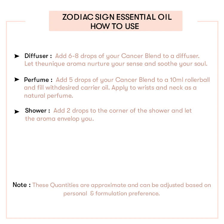 Zodiac Essential Oil Blend Kit is designed to create a serene and tranquil atmosphere, fostering a connection with the dreamy and imaginative qualities of individuals. Whether diffused or applied, the blend aims to support Pisceans in finding moments of peace, introspection, and emotional well-being.