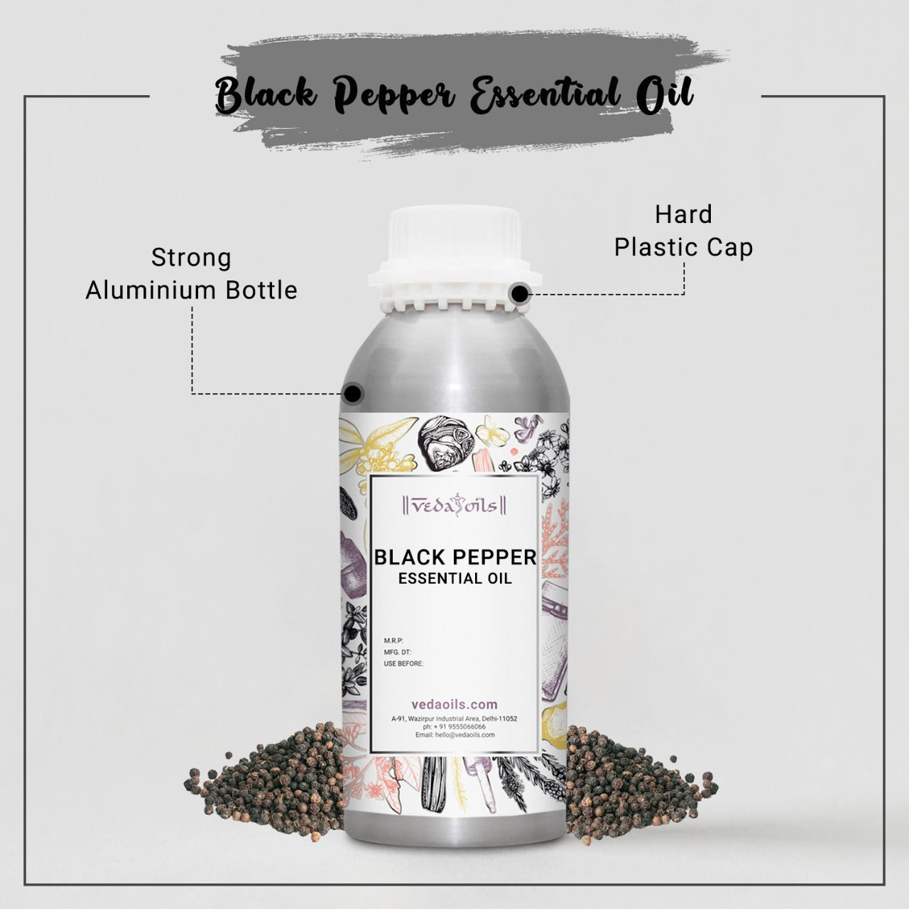 VedaOils offers premium grade and pure Black Pepper Essential Oil that can be easily identified due to its strong, musky, and spicy fragrance. It has positive effects on your digestive system and also boosts mental alertness. Our natural Black Pepper Essential Oil is popular in Candle Making, Soap Bars & Aromatherapy practices.