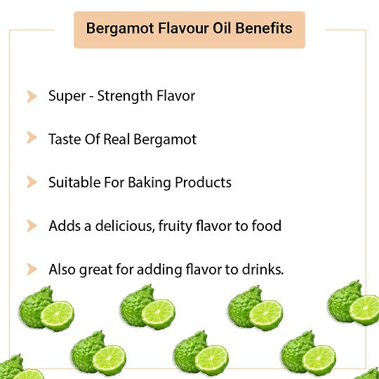 The flavor oil is completely safe for use. It is high quality and best standard product which is suitable for baking purposes. It is water and oil-soluble and you may use it in a variety of food items. The strong taste of Bergamot will provide you with the desired flavor. Bergamot flavour oil retains its aroma and taste even when is used in extremely high temperatures.
