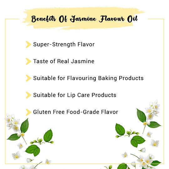 The jasmine flavour oil perfectly blends with all kinds of natural ingredients such as raw sugar, honey, milk, etc. It is suitable for making food items and drinks of all kinds. Its soothing and sweet taste of jasmine will melt in your mouth instantly and taste buds will further crave it.