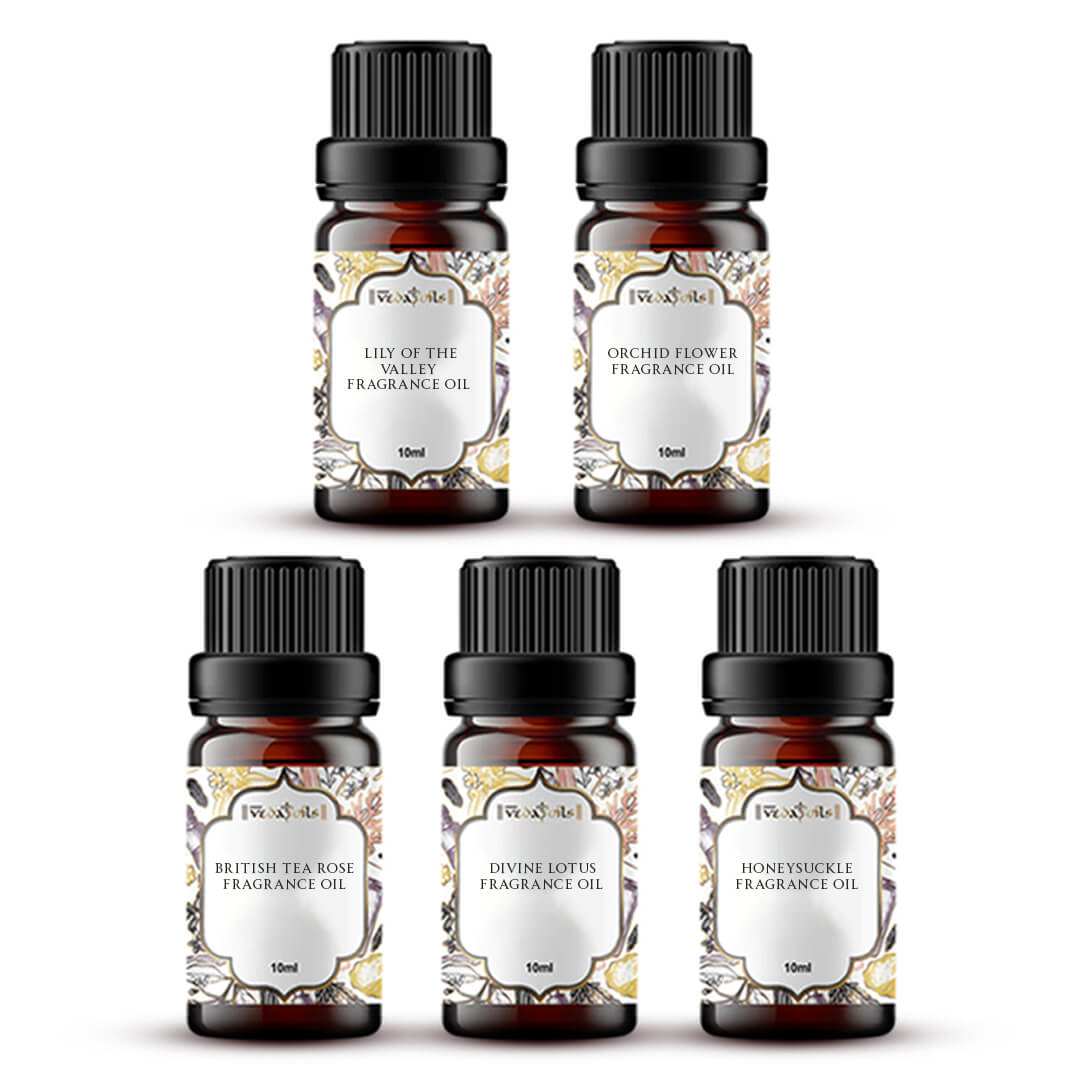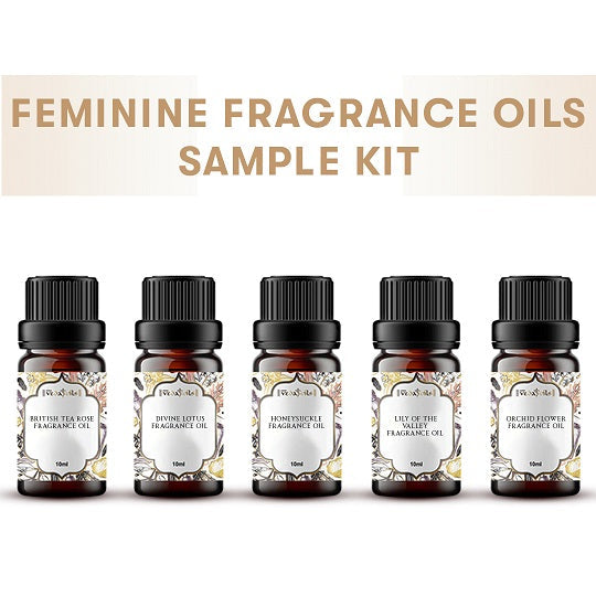 An Feminine Fragrance Oils Sample Kit is a delightful exploration of nature-inspired scents, capturing the essence of the great outdoor. Our kits offer an array of grounding and soothing aromas such as British Tea Rose Fragrance, Divine Lotus Fragrance, Honeysuckle Fragrance, Lily of The Valley Fragrance& Orchid Flower Fragrance. Ideal for crafting personal care products, candles, soaps, or diffusers, bath item. Experiment with these nature-inspired fragrances to create a harmonious and comforting ambiance in your surroundings. The fragrance oils in these kits are typically provided in small sample sizes. This is ideal for testing and experimenting without committing to larger quantities, especially if you're trying out different Feminine scents.Feminine Fragrance Oils Sample Kit