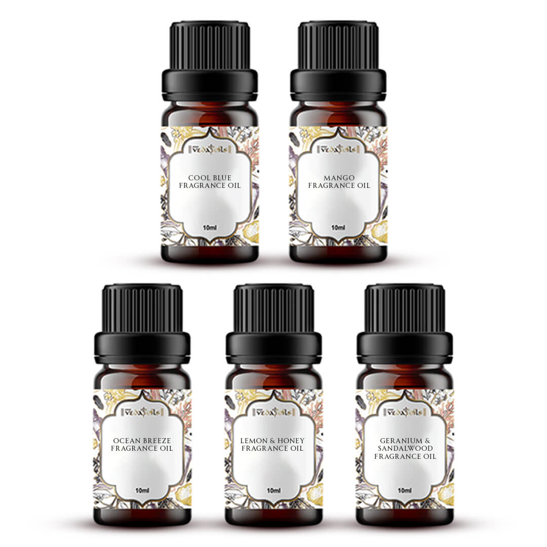 | Fragrance Name | Cool Blue Fragrance | Mango Fragrance | Ocean Breeze Fragrance | Lemon and Honey Fragrance | Geranium & Sandalwood Fragrance Oil |