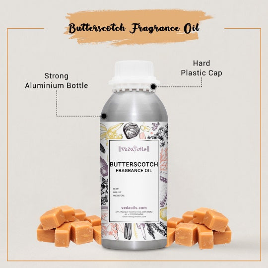 It is one of the most widely used ingredients for making Body sprays and Perfumes. Many aromatic candles and soaps also use Butterscotch Fragrance Oil due to its pleasing accent. Butterscotch is also a popular ingredient in many skin care, cosmetic and beauty products. VedaOils offers premium quality Butterscotch Fragrance Oil, which is chemical-free and Vegan-friendly. A few drops of this oil can fill the products with creamy vanilla and a butterscotch scent.