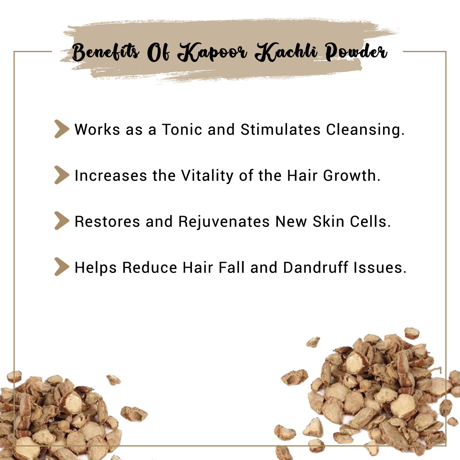 Kapoor Kachli Powder include the formation of a protective barrier around each of your hair shafts, which locks in moisture and keeps your hair conditioned. It is especially useful when combined with other moisturising elements in hair packs. The advantages of these conditioners is that it helps to reduce concerns like hair breakage and split ends.