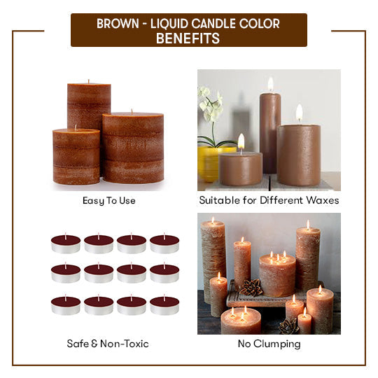 Brown liquid candle dye is used to add vibrant Brown color to candle wax, allowing crafters to customize the appearance of their candles for aesthetic or thematic purposes.