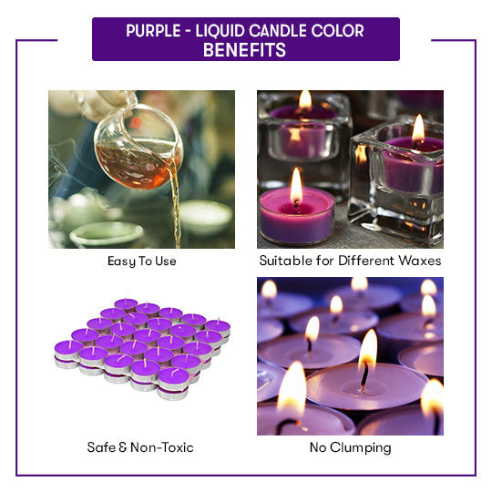 Purple liquid candle dye is used to add vibrant Purple color to candle wax, allowing crafters to customize the appearance of their candles for aesthetic or thematic purposes.