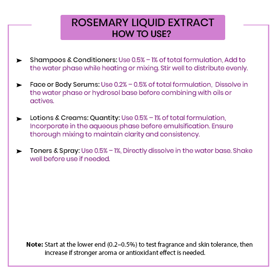Rosemary water soluble liquid extract is a popular botanical ingredient for hair and cosmetic formulations due to its compatibility with water based products. Derived from Rosmarinus officinalis leaves, it blends easily into shampoos, conditioners, toners, serums, and lotions without cloudiness. The extract contains natural aromatic compounds and antioxidants that support product freshness and sensory appeal. In hair care, it is commonly used to enhance herbal positioning and scalp focused formulations. In cosmetics, it contributes a natural, plant based profile aligned with clean beauty trends. Rosemary water soluble liquid extract is valued for stability, versatility, and consistent performance in modern cosmetic formulations.