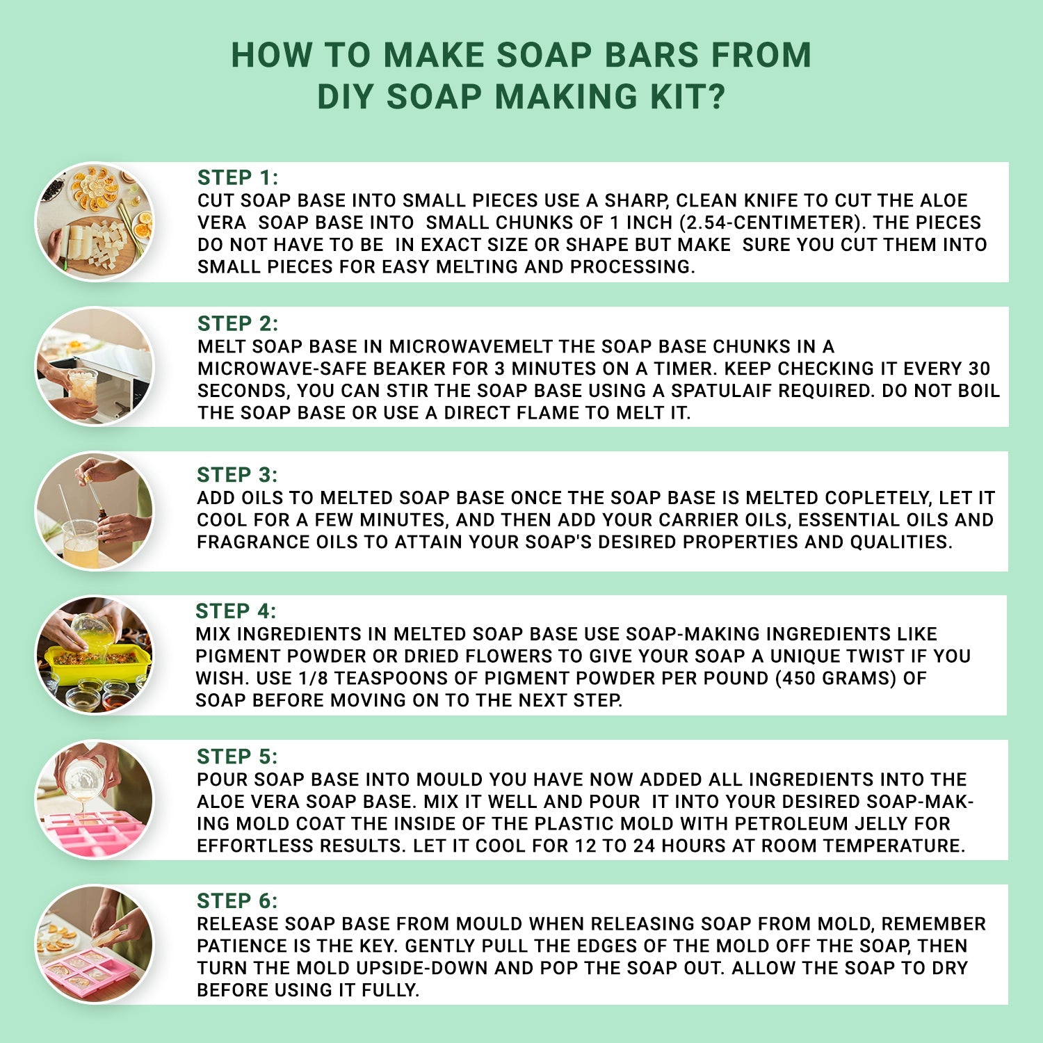 With customized Natural Aloe Vera Soap Making Kit, you can create the best moisturizing and nourishing soap bars at home. VedaOils has thoughtfully added the most amazing soap-making ingredients in this beginner soap making kit so that you can make soap bars that are enriched with the goodness of nutrients. This Soap Making Crafting Kit provides step-by-step instructions so you can customize your soap and pamper yourself with natural emollient and hydrating properties.
