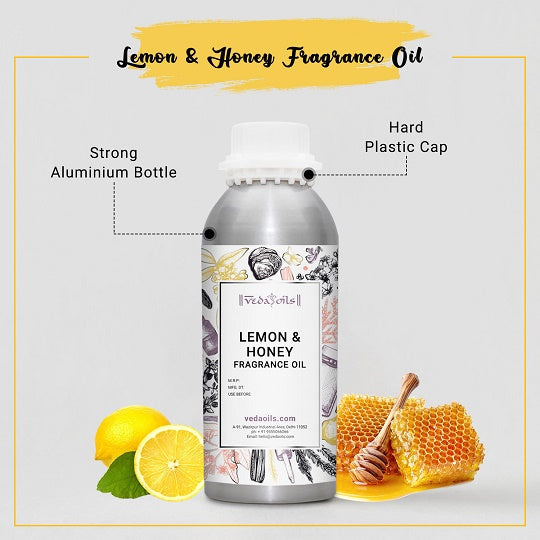 - Aromatic Candle: You can make your favourite scented Candles by imbuing them with a Calm and comforting Fragrance oil from VedaOils. All you need is to mix 2 ml of lemon & honey perfume oil for 250 grams of candle wax flakes and let it sit for a couple of hours. Make sure you measure your quantities correctly so that the fragrance doesn't bother your sensitivities.