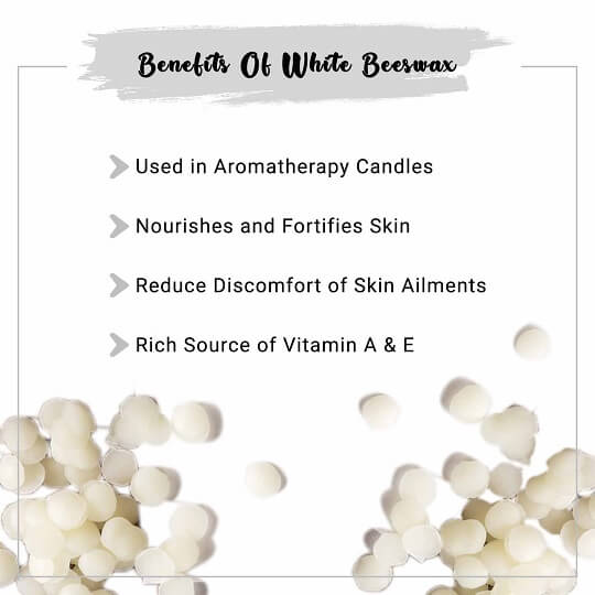 White Beeswax Beads also possess antiallergic and anti-inflammatory properties. White beeswax can be used as a thickening agent, or emulsifier. White Beeswax Pellets from VedaOils consist of natural properties and have a high water-holding capacity which erases fine lines and wrinkles. These pellets soothe & soften the skin and are also highly beneficial for the hair. Our ready-to-use White Beeswax Pellets are easy to use and reusable.