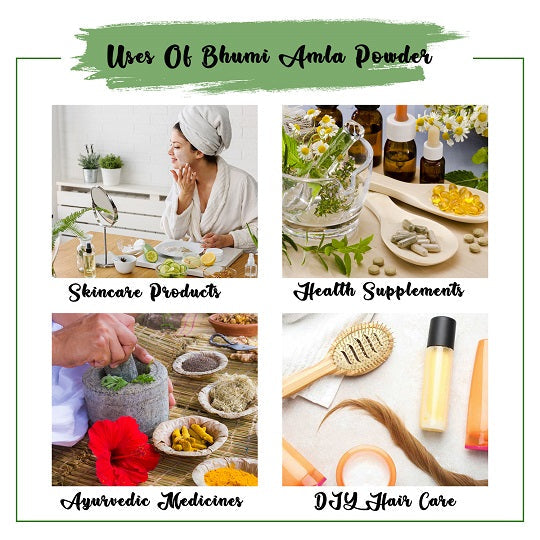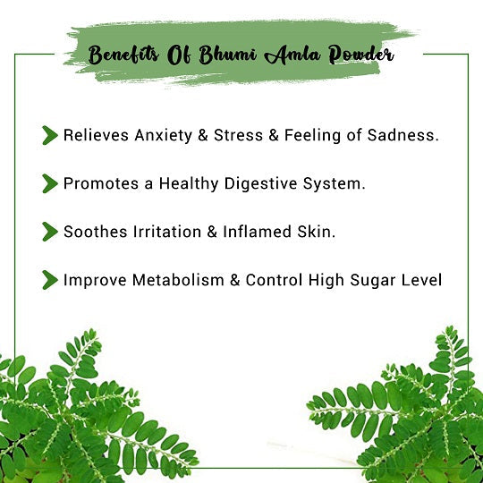 Bhumi Amla Powder is a finely powdered version of Bhumi Amla with a light greenish-brown tint. Its characteristic aroma can lift your spirits, but it can also be overbearing at times. In common Indian families, it is referred to as Natural Bhumi Amla Powder and is only used externally. It can be added directly to skin conditioners and shampoos, but keep in mind that it will also color your hair.
