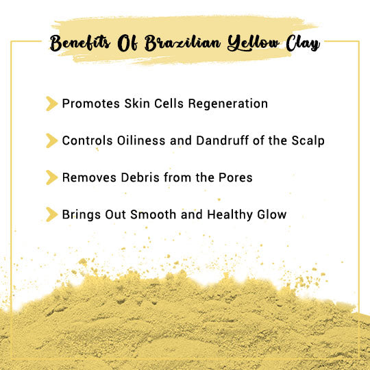 Brazilian Yellow Clay helps to remove impurities and toxins from the skin. It reduces the greasiness and excess production on the scalp. Yellow Brazilian clay helps in repairing hair cuticles.