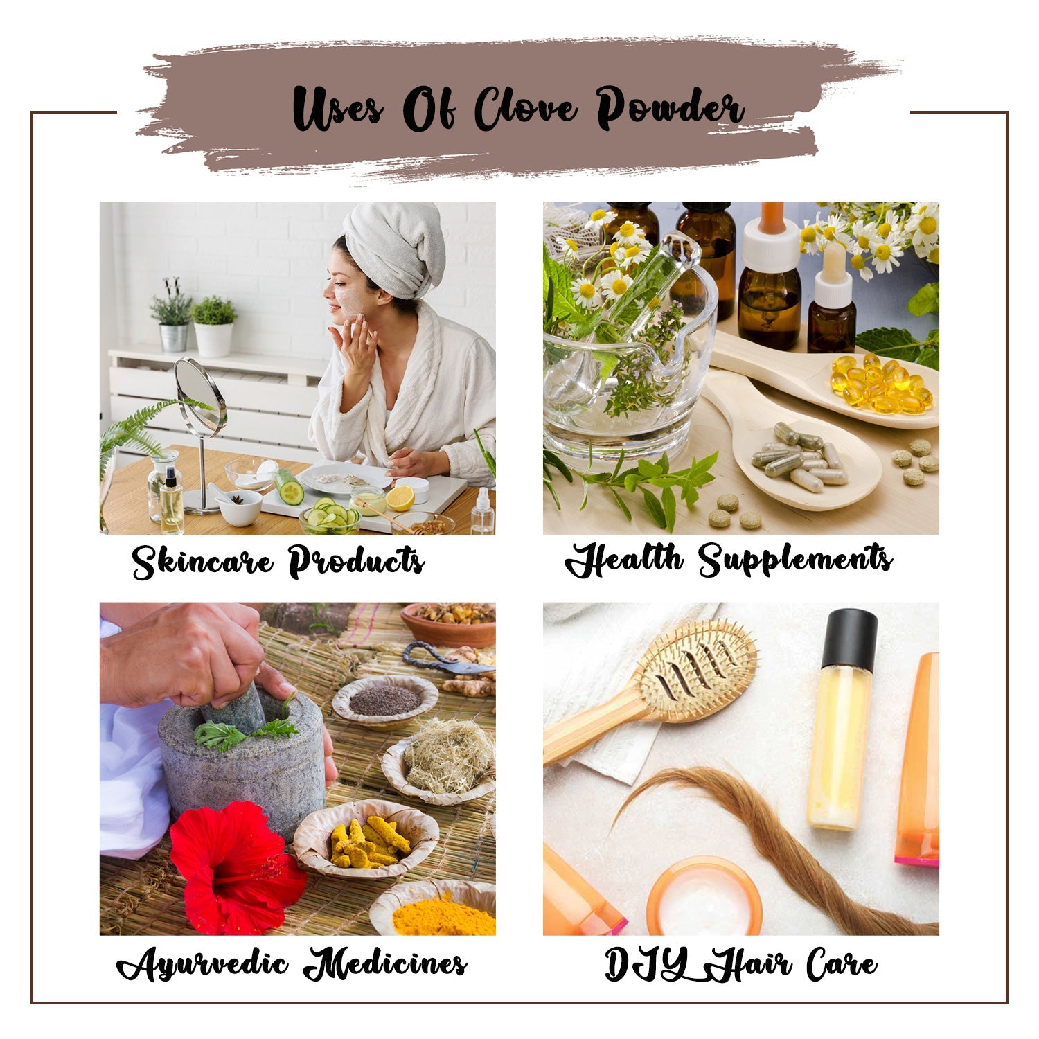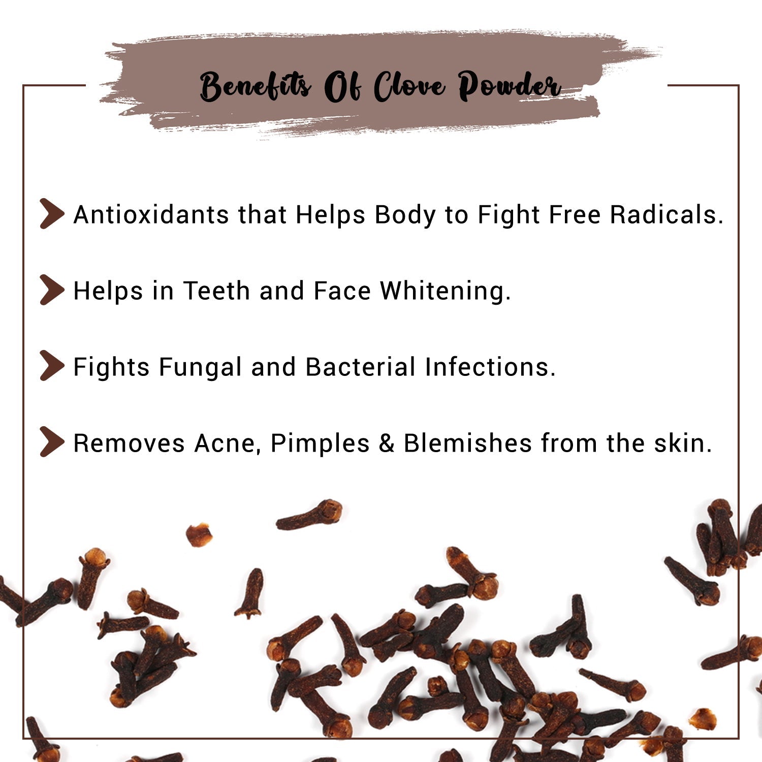 The clove powder is an organic product that is 100 percent safe for the skin and removes all the toxins from it. The clove powder works on diabetes and certain cancers as well. Clove powder has enormous benefits for both skin and hair. The powder nourishes the skin from within and helps whiten the face and teeth. Clove powder is edible and helps in enhancing beauty. The powder prevents infections and gives a natural-looking radiant skin.