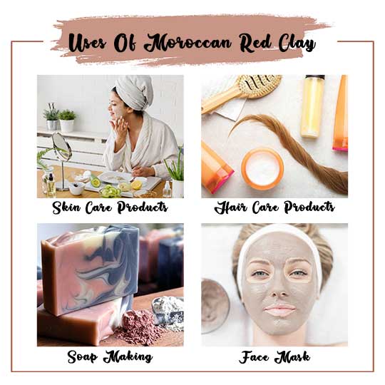 Natural Moroccan Red Clay skin improves the skin texture and tone by treating the bumpiness and unevenness on the skin. Moroccan Red Clay also prevents skin damage that is caused by harmful bacteria and free radicals.